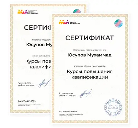 После окончания курса вы получаете Персональный сертификат